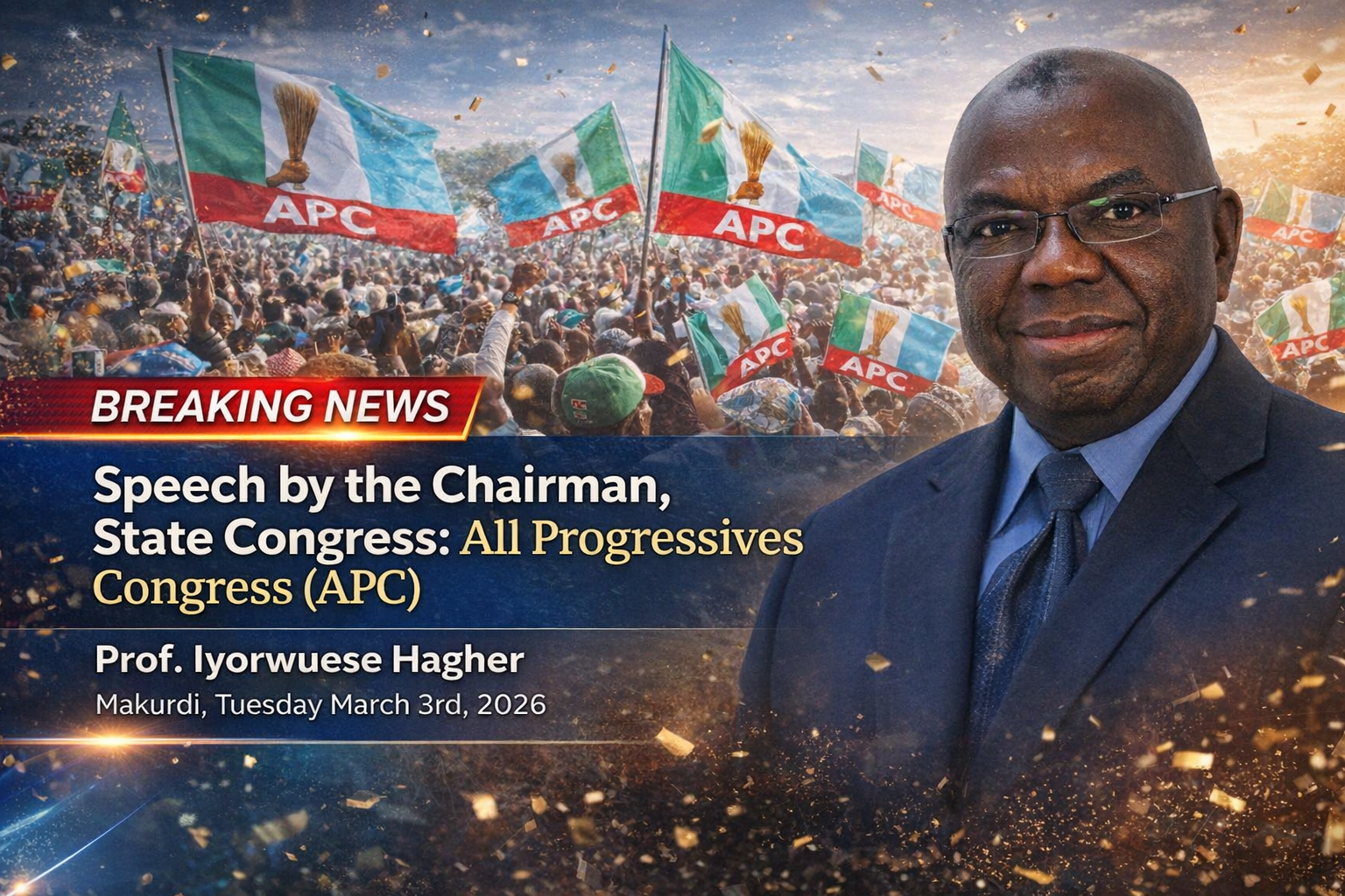At the APC State Congress held in Makurdi on Tuesday, March 3rd, 2026, Prof. Iyorwuese Hagher delivered a powerful address as Chairman of the Congress, reaffirming the party’s commitment to unity, internal democracy, and responsible leadership in Benue State. His speech emphasized discipline, institutional strength, and collective progress as the foundation for sustainable political success and development.